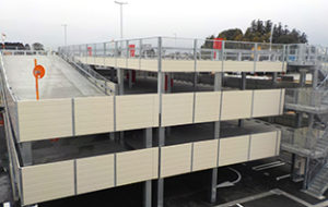 高さ制限・重量制限・速度制限に加え、運用周知看板を駐車場入口に設置しております。
